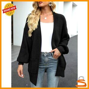 Chunky Knit Cardigan Oversized Lantern Sleeve Open Front Sweater with Pockets