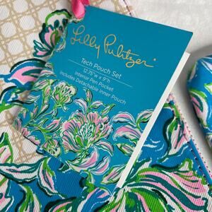 Lilly Pulitzer Tech Pouch 2 Piece Set Cumulus Blue Chick Magnet Print NEW