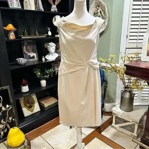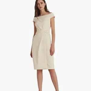 This Lauren Ralph Lauren crepe dress is a timeless off-the-shoulder silhouette in a soft mascarpone cream hue. With short sleeves, a flattering fit, and elegant simplicity, it’s perfect for weddings, cocktail parties, or upscale evenings. Brand new with tags—never worn.