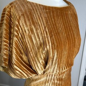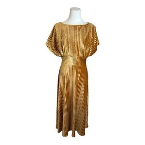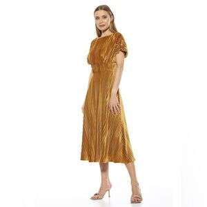 ALEXIA ADMOR Veronica Gold Pleated Velvet Midi Dress size S Wedding Party Event