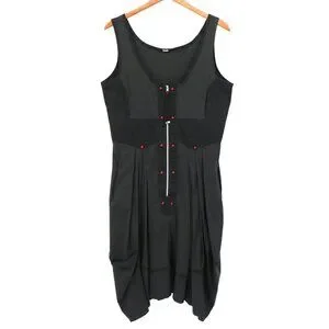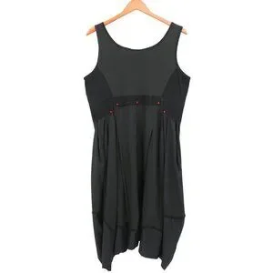 ADC Lagenlook Art to Wear Mixed Media 2 Pc Lantern Dress Jacket Set Black 12 14