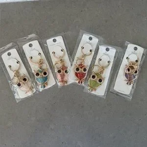 Set of six owl keychains in various colors. Perfect for adding charm to your keys or bag.