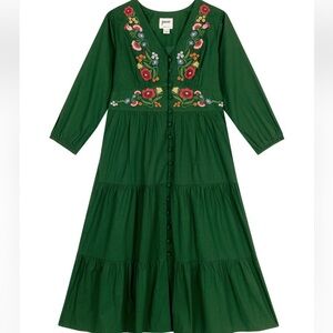 Discover elegance with this green long sleeve dress, adorned with exquisite floral embroidery. Perfect for any occasion!