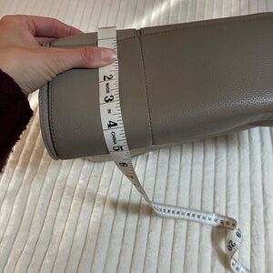 Chic Tory Burch tote in taupe leather. Features elegant design and spacious interior. Ideal for everyday use. Has a ton of space and pockets. It’s in used shape tho. Comes from a smoke free home. I noticed that the bottom has a lot of cracking going on that I don’t remember being there before I was preparing to list. Sad! Not noticeable when worn since it’s on the bottom. One of the sides also has a water mark. Again, not real noticeable when used if the magnetic side is snapped shut. There are signs of use but it’s still got a lot of life left to offer. If you are looking for a cheap designer option for the office, this is your bag. It is authentic, versatile and business friendly. Please refer to all of the photos provided to be sure of the details, condition and measurements. Thanks for checking out my closet!!