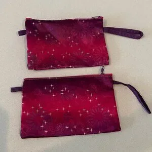 2 Mauve Pink Satin Travel Cosmetic Pouch