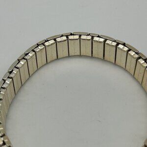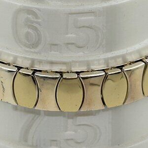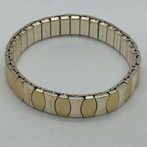 This vintage bracelet features an elegant two-tone design with gold and silver finishes. Its expansion stretch links provide a comfortable fit for a range of wrist sizes, embodying timeless charm.