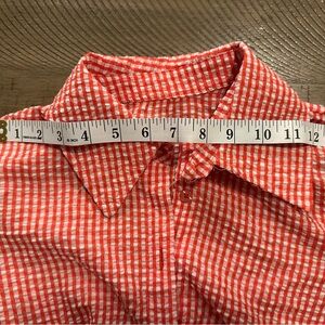 Vintage Style Red Gingham Seersucker Tie-Front Crop Top - Size M