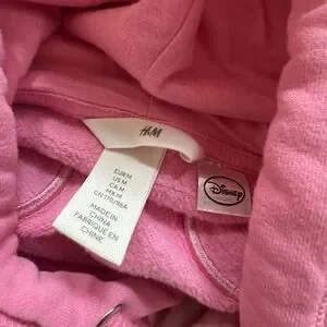 H&M Disney pink hoodie featuring an embroidered Mickey Mouse outline on the front. Soft interior, cozy pullover style with drawstring hood and kangaroo pocket. Cute, comfy, and perfect for casual wear or Disney fans.