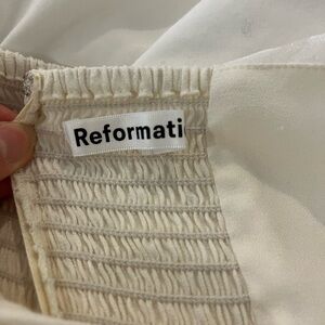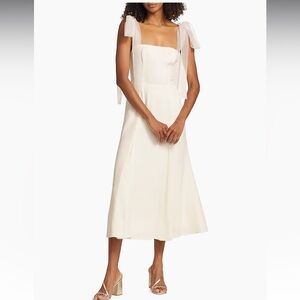 Gorgeous ivory crepe dress from Reformation with organza shoulder ties. The PERFECT rehearsal dinner dress! Only worn once.