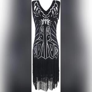 NWT Babeyond 1920S Vintage V Neck Sequins Beads Party Cocktail Dress, Large