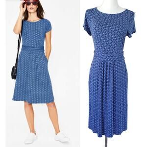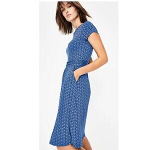 BODEN Amelie Jersey Dress Blue Star Size 10 Short Sleeve Preppy Pockets