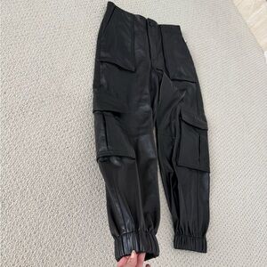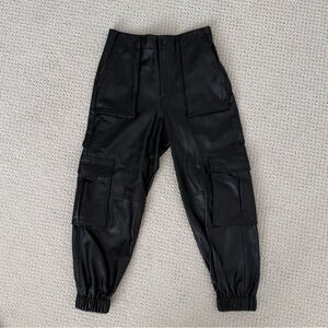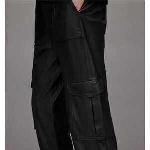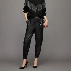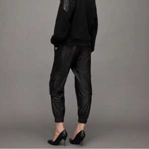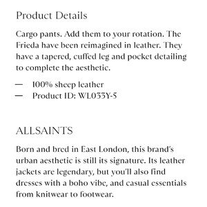 AUTHENTIC All Saints Freida High-Rise Leather Cargo Trousers. 100% sheep leather. Front waist lays flat but the back waist is elastic so it has a comfortable fit. Excellent used condition. Women’s size US 6. Measurements shown in photos.