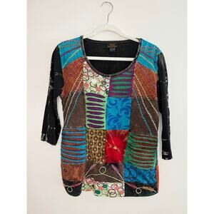 VTG Y2K Rising International Womens Hippie Boho Phoebe Buffay Maximalist Top L