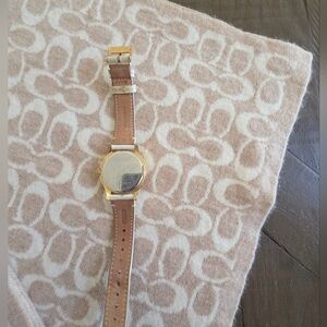 Coach Bundle Set Scarf + Pebble Leather Double Wristlet + Watch + Mirror Case Beige Neutral Gift Set