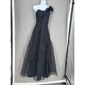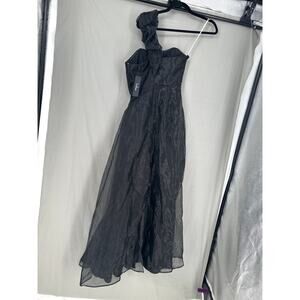 Lulus Dress Small Black Maxi Organza Off Shoulder Ruffle Event Party Sleek Slit