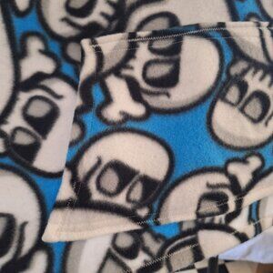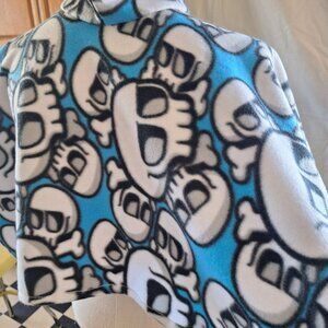 Handmade Kids Fleece Skull Poncho W Pocket & Hood Car Seat Blue Black White