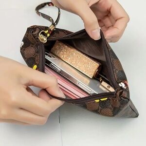 Adorable Mickey Mouse wristlet clutch featuring a classic brown checkered print with playful Mickey graphics throughout. Compact, lightweight, and easy to carry, this zip-top wristlet is perfect for everyday errands, travel, theme parks, or adding a subtle Disney touch to your outfit.