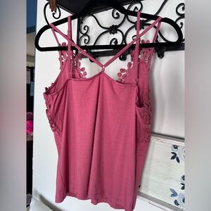 Elegant pink tank top featuring intricate floral lace design. Perfect for a stylish and comfortable look. Adjustable and adorable crisscross straps. Very soft!