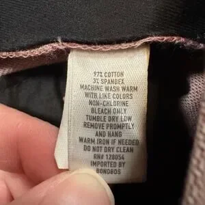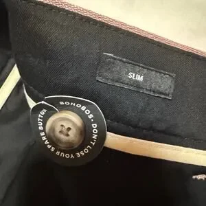 Features: Easy care, cotton spandex blend, embroidered day of the week on the waistband, button closure on back pockets, belt loops, button/hook latch/zip closure. MSRP $119