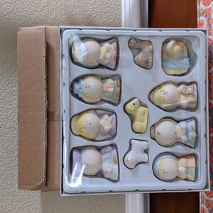 Charming pastel nativity figurine set. Vintage and new in box.
