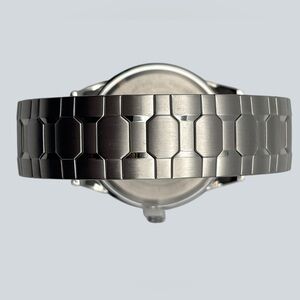 Silver-tone dial with partial Arabic numerals & team logo; date window at 3 o'clock