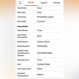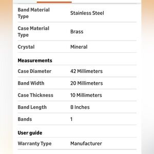Silver-tone 42mm brass case with scratch-resistant mineral glass crystal Indigo light-up watch dial; luminant hands water_resistant to 50m (165ft: in general, suitable for short periods of recreational swimming, but not diving or snorkeling