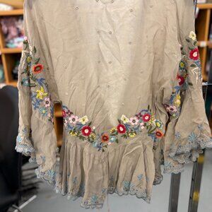 Johnny Was Blouse Jacket /Shacket – Sheer Embroidered Floral with Flounce Sleeve