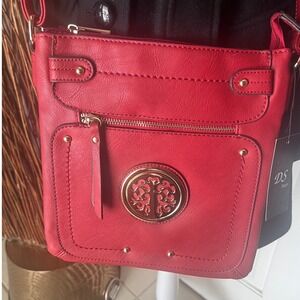 DS Bags Cherry Red Crossbody Bag Gold Logo Boutique Vegan Lux Leather Purse