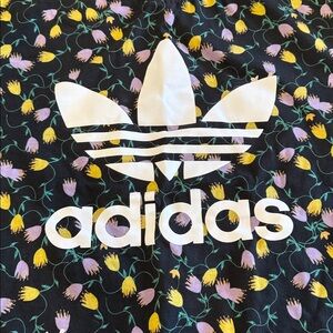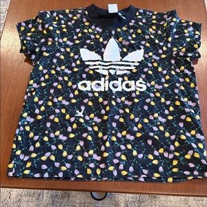 Adidas Crew Neck Tee T-Shirt Black Purple Yellow Flowers Floral Size Large EUC