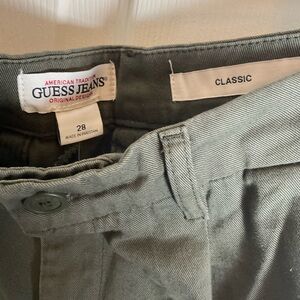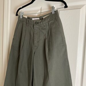 Guess Classics High-Waisted Pleated Wide Leg Pants - Olive Drab - Size 28