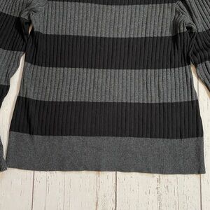 Cable & Gauge Ribbed Black and Gray Striped Sweater w/ Bell Sleeves, size XL