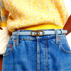 GUCCI Women's Thin Belt w/ Interlocking G Buckle Light Blue Leather SZ 95cm NEW
