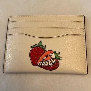 NWT Coach Slim Id Card Case Strawberry Graphic Leather Chalk Multicolor