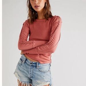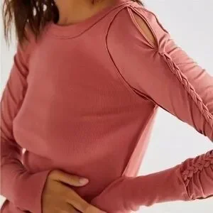 ✨ Description: Free People Daisy Chain Cuff In Sun Sand. Brand New With Tags! Size: Medium Color: Pink (Sun Sand) Free People Tops | Long Sleeve | Braided Sleeve Detail | Raised Seams | Ribbed Look