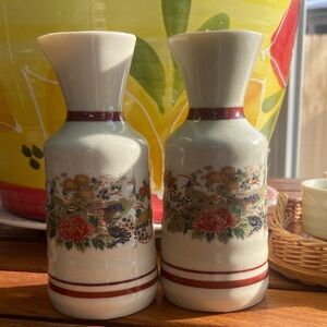 Satsuma 1979 Porcelain Sake Set. Beautiful peacock design. All in great condition.