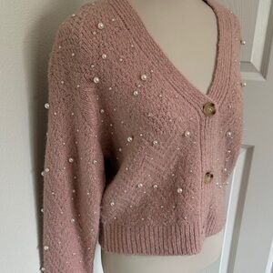 🩷NWT Lush Pastel Pink Pearl-Embellished Cardigan Sweater SM🩷