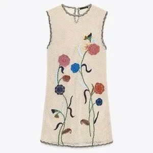 NWT Zara Woman ZW COLLECTION Crochet Dress with Floral Embroidery