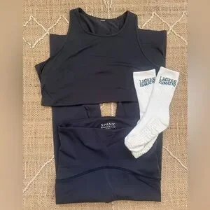 SPANX Booty Boost Leggings Keyhole Tank Dark Storm Souls Grip Socks Lagree M