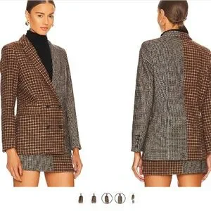 Rails Cody Blazer Womens Small brown mixed mini check wool blend