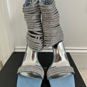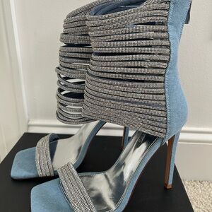 Shine with every step in these glamorous silver and blue strappy heels. Perfect for adding a touch of elegance to your outfit.