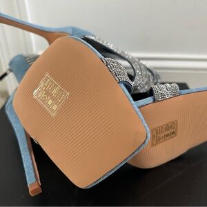 Azalea Wang Cicely-Denim Glamorous Silver and Blue Strappy Heels
