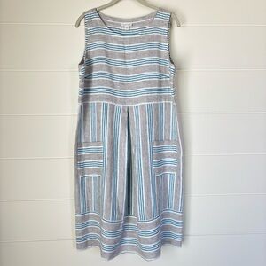 J. Jill Love Striped Pleated Sleevless Linen Shift Sundress Size Medium