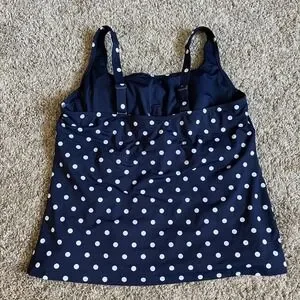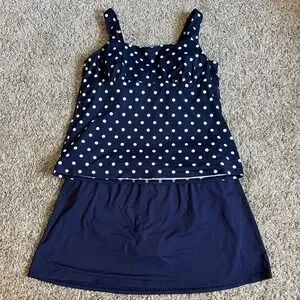 Lands' End Swimsuit Navy Blue White Polka Dot Tankini Top 18D and Skirt 18