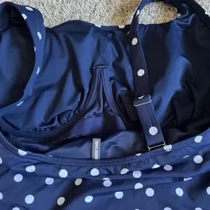 Navy Blue White Polka Dot Tankini Top