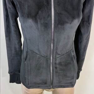Athleta Velour Fuzzy Women's Black Zip-Up Jacket
