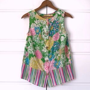 Lilly Pulitzer Floral Silk Tank Top Womens XS Pink Green Vibrant Iona Gardencore