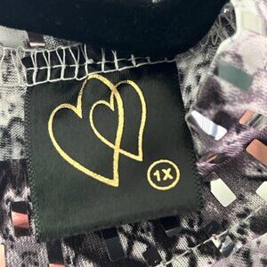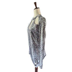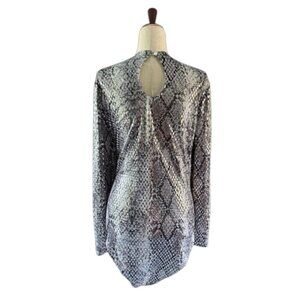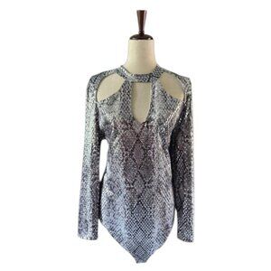 Women's Mock Neck Cut Out Bodysuit Mirrored Embellishment Snake Skin Print SZ 1X