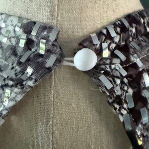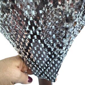 Silver Mirrored Embellishment all over. Stretchy. Button Closure in the back