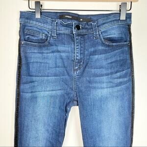 Harper dark wash skinny jeans with black velvet stripe on side mid rise size 29