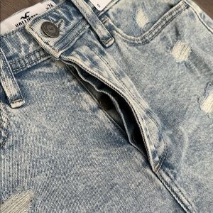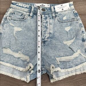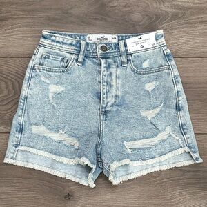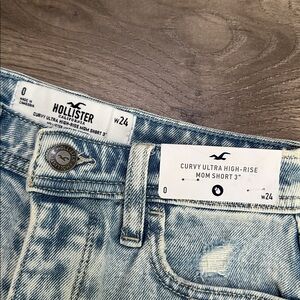Hollister Curvy Ultra High Rise 3" Mom Frayed Stretch Blue Jean Shorts Size 24